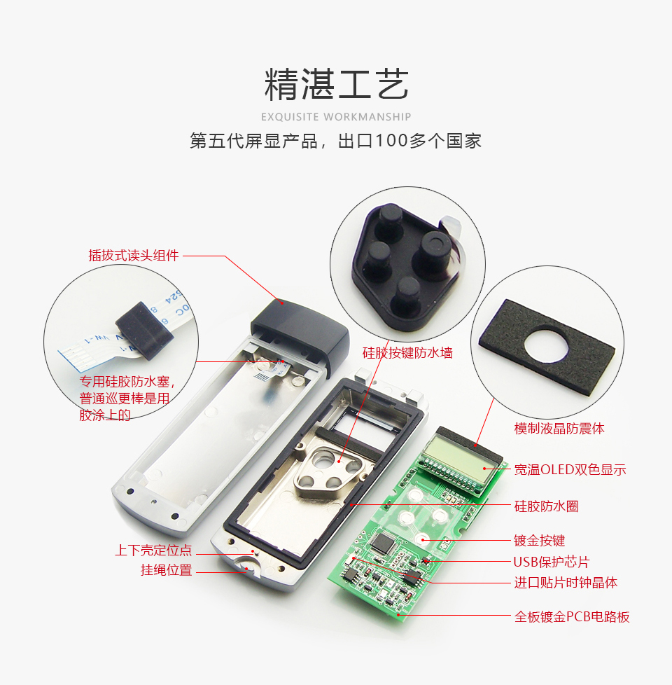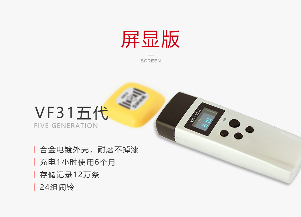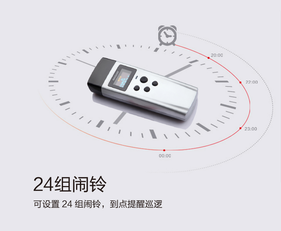 V3五代屏顯版,鋅鋁合金電鍍外殼,聚合特鋰電池,12萬條記錄超大存儲(chǔ), 24組鬧鈴提醒巡邏,OLED顯示屏,陽光下也能清晰顯示。