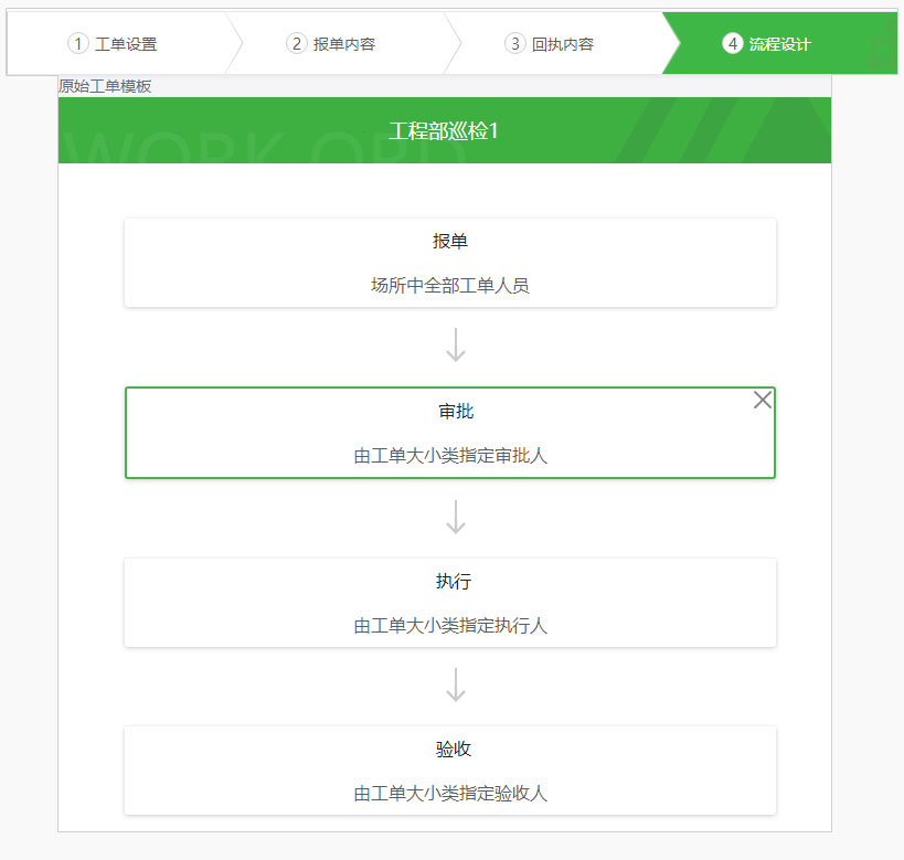 從報單到結束的過程. 主流程包含:報單、審批、執(zhí)行、驗收、完成等步驟. 同時還支持:轉派、回執(zhí)、評價、取消等分支流程.