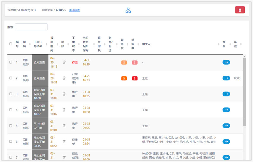 選擇您關注的場所,報單監(jiān)控中心將實時監(jiān)控該場所中所有未完成的工單及完成進度。